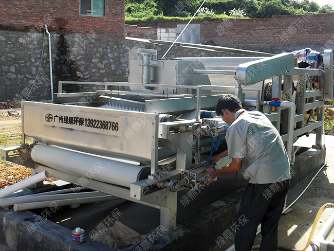 鋁材廠污泥泥水分離技術特點:因為其中含有金屬元素的因素,我們針對該問題采用高效的絮凝劑來完成對手污水的絮凝,網帶采用進口網帶進行分離。機身采用多組纏繞輥纏繞,臥式鋪開加大污泥受力面積。